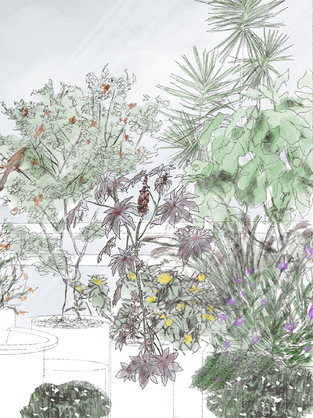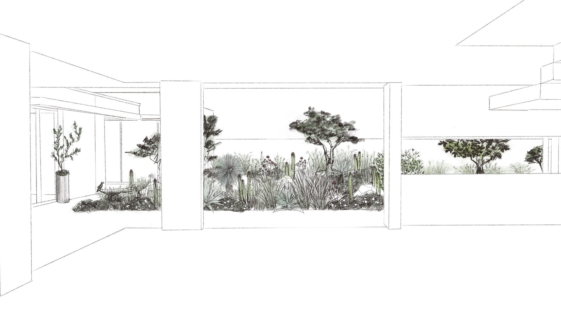 Variaciones de plantación ornamental para un patio cerrado · Proyecto de Studio Zain Masud. Dubai, 2024.