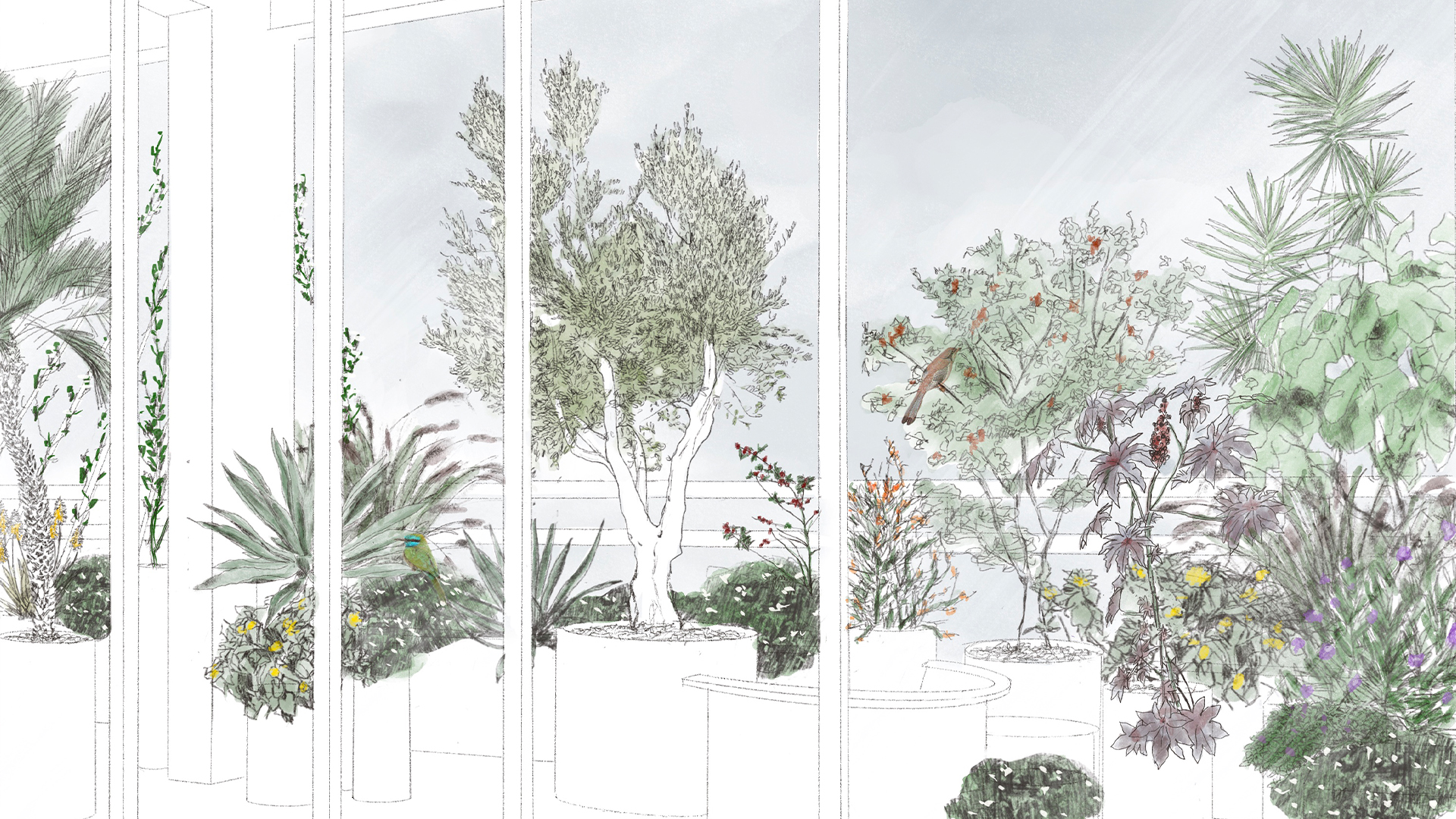 Un jardín en un balcón · Proyecto de Studio Zain Masud. Dubai, 2025.