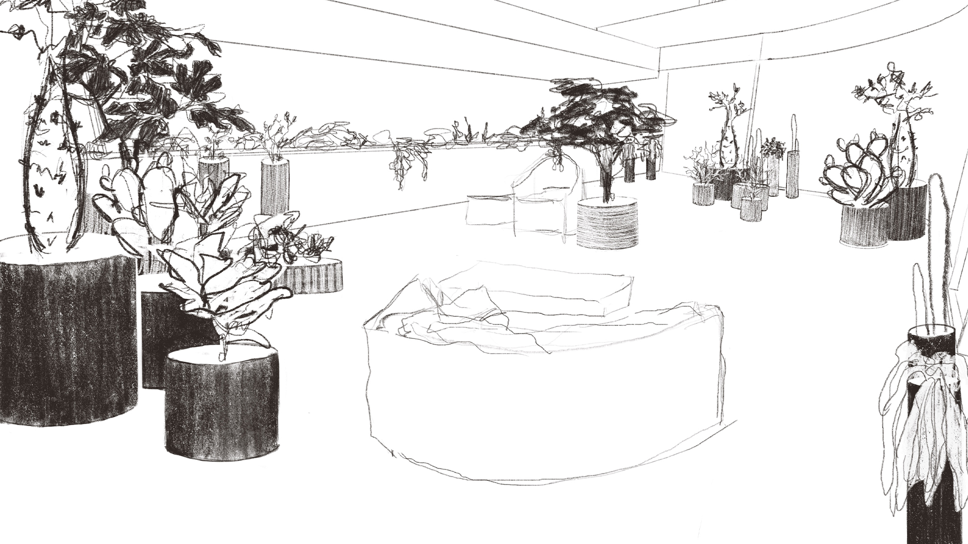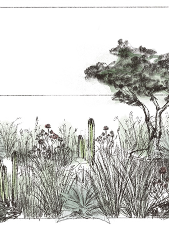 El ciclo de vida de Agave americana. Ilustración para Alserkal Avenue Public Realm Landscape · Proyecto de Studio Zain Masud. Dubai 2023.