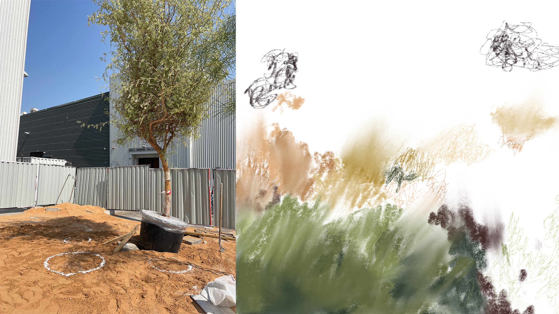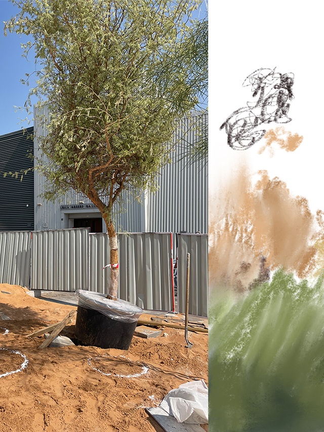 Replanteo de Acacia galpinii. Establecimiento de jardín en Alserkal Avenue Public Realm Landscape · Proyecto de Studio Zain Masud. Dubai, 2023.