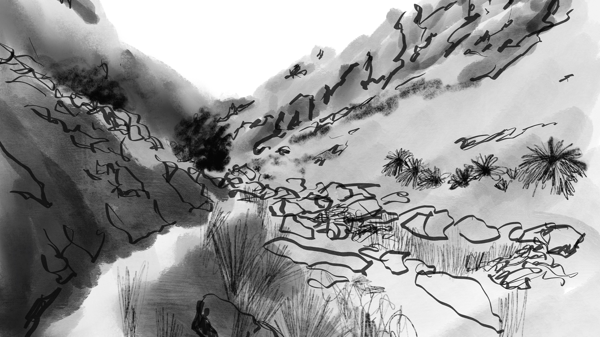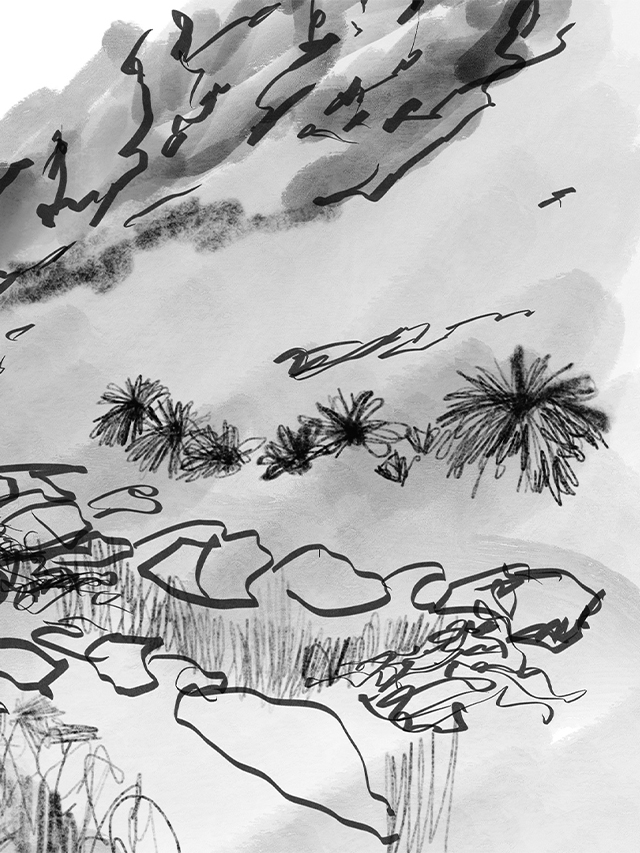 Apuntes de forma para un Wadi, un valle o río seco de caudal estacional · Para Studio Zain Masud. Dubai, 2022.