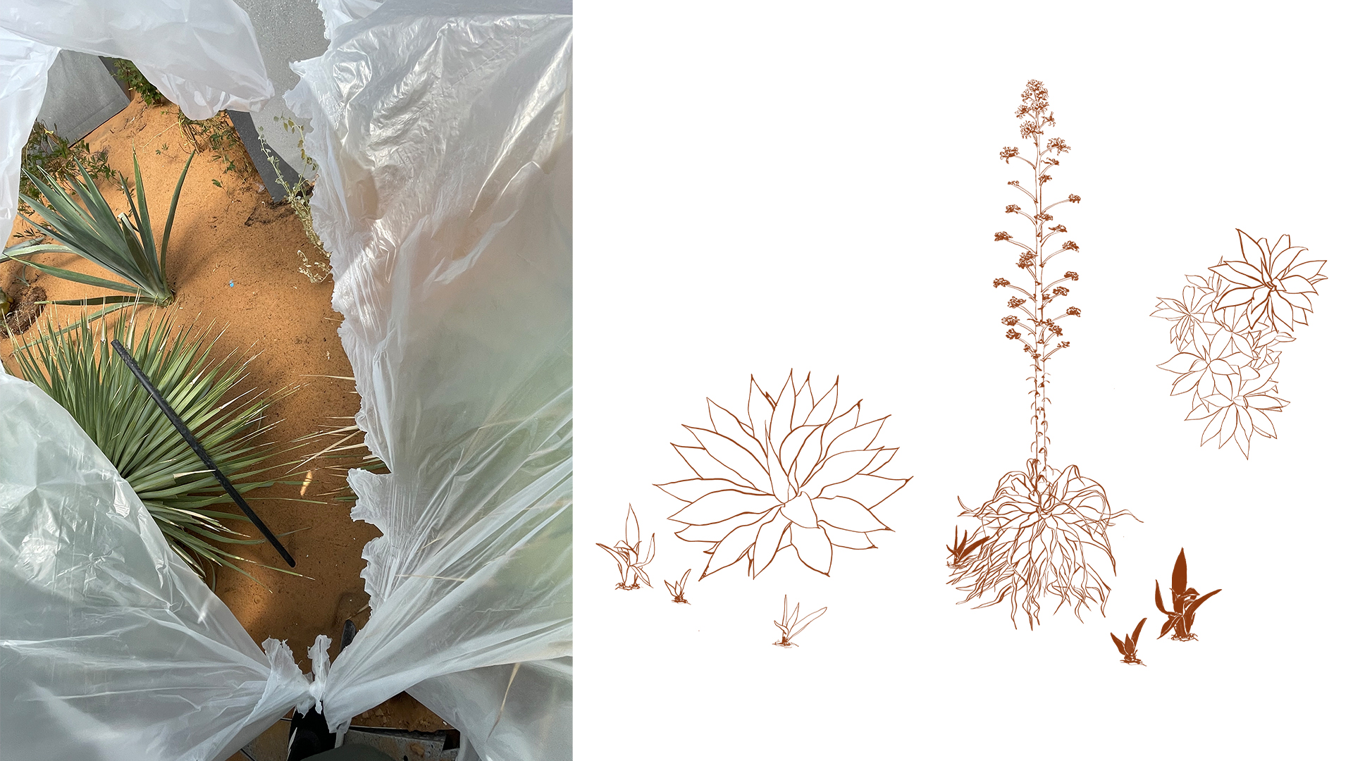 En obra. Yucca rostrata y Agave americana · 2023 | Ciclo de vida del Agave americana · 2023